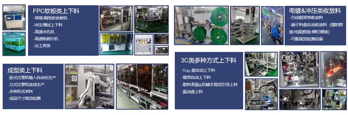 主營高標(biāo)準非標(biāo)定制設(shè)備,3C、電鍍、沖壓、FPC、成型等多行業(yè)上下料設(shè)備,視覺類軟硬件設(shè)備,并提供相關(guān)技術(shù)支持和整套解決方案。